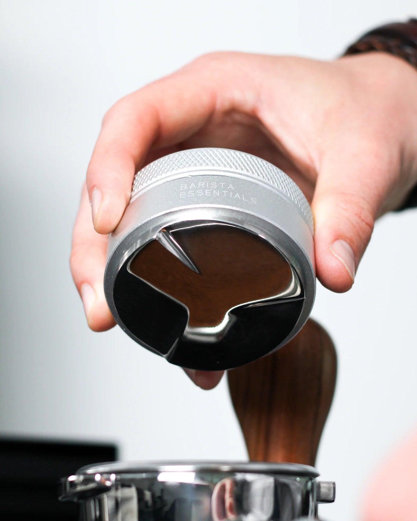 You probably know the feeling: you grind your coffee beans, and suddenly there’s a mountain of grounds in your portafilter. No matter how good your tamping technique is, without proper distribution, the center of the puck will always be more compact than the edges.