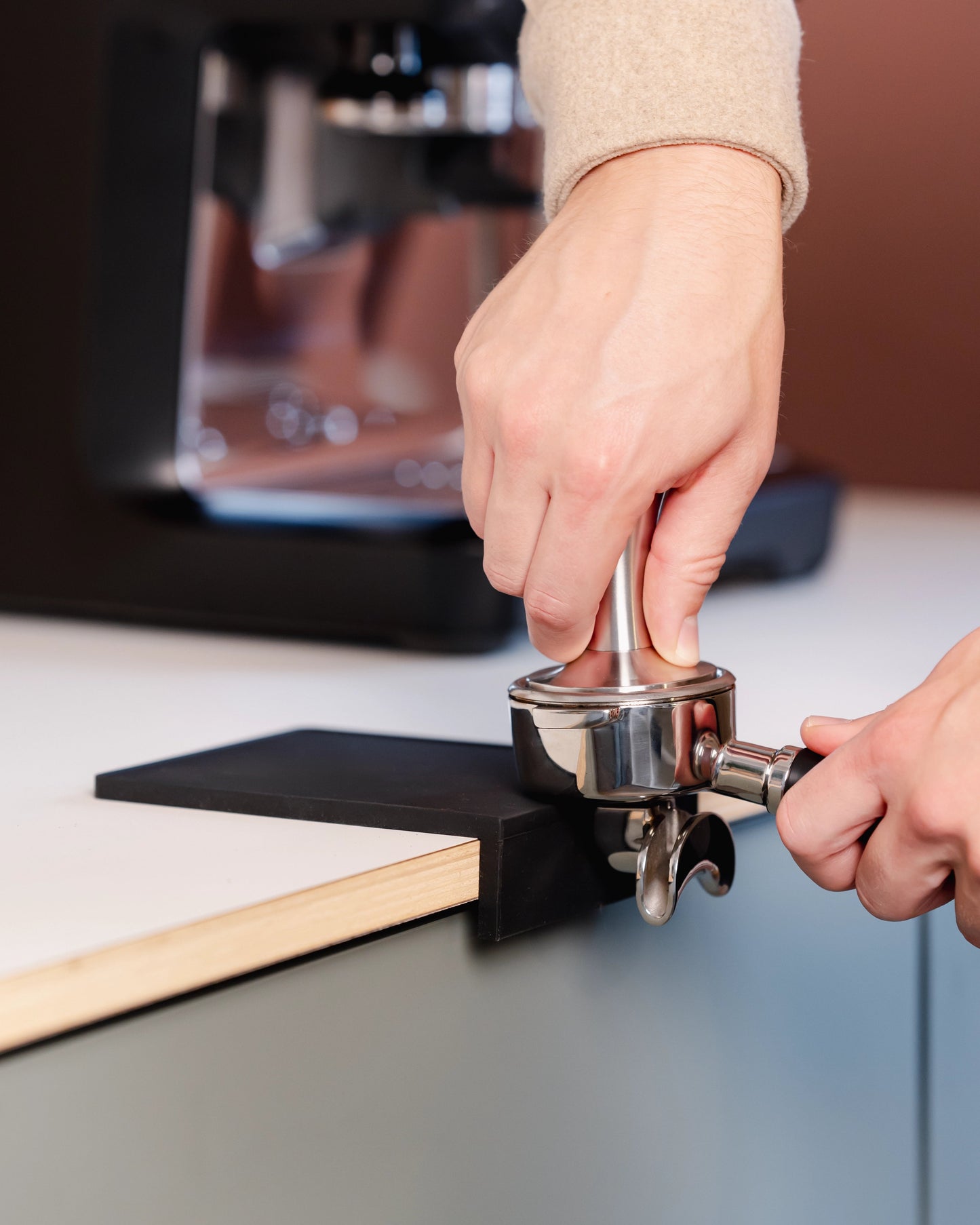 We decided to design a coffee tamper mat that gets back to the basics: a solid, non-slip, easy-to-clean tamping mat. And that’s exactly what you’re looking at now.