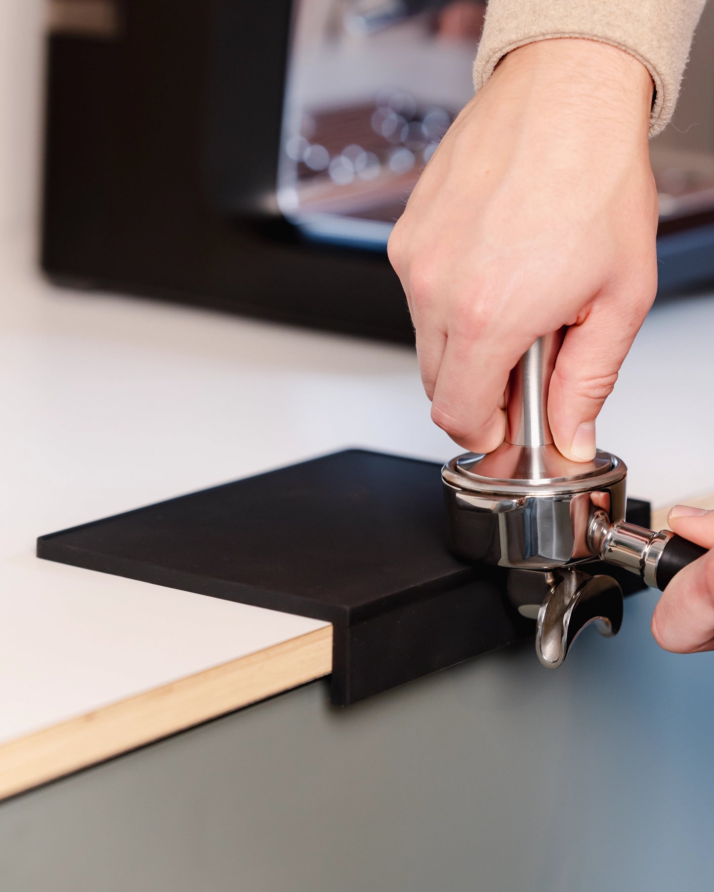 The result? Unevenly tamped (sour) coffee, scratches on my work surface, and a whole lot of mess. That had to change.