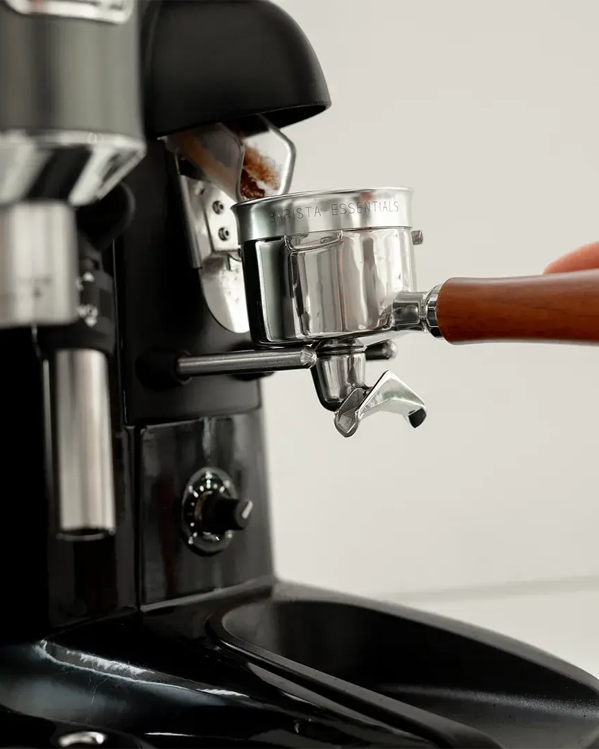 While grinding, a lot of coffee can end up outside your filter basket. That’s a shame, and that’s exactly why a dosing ring is so useful.