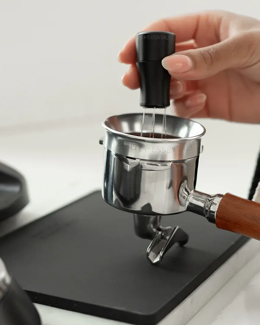 That’s when we started developing our own dosing funnel. We wanted to design one that fits perfectly on your filter basket, stays in place securely, and is lightweight. The dosing funnel you're now looking at is the result.