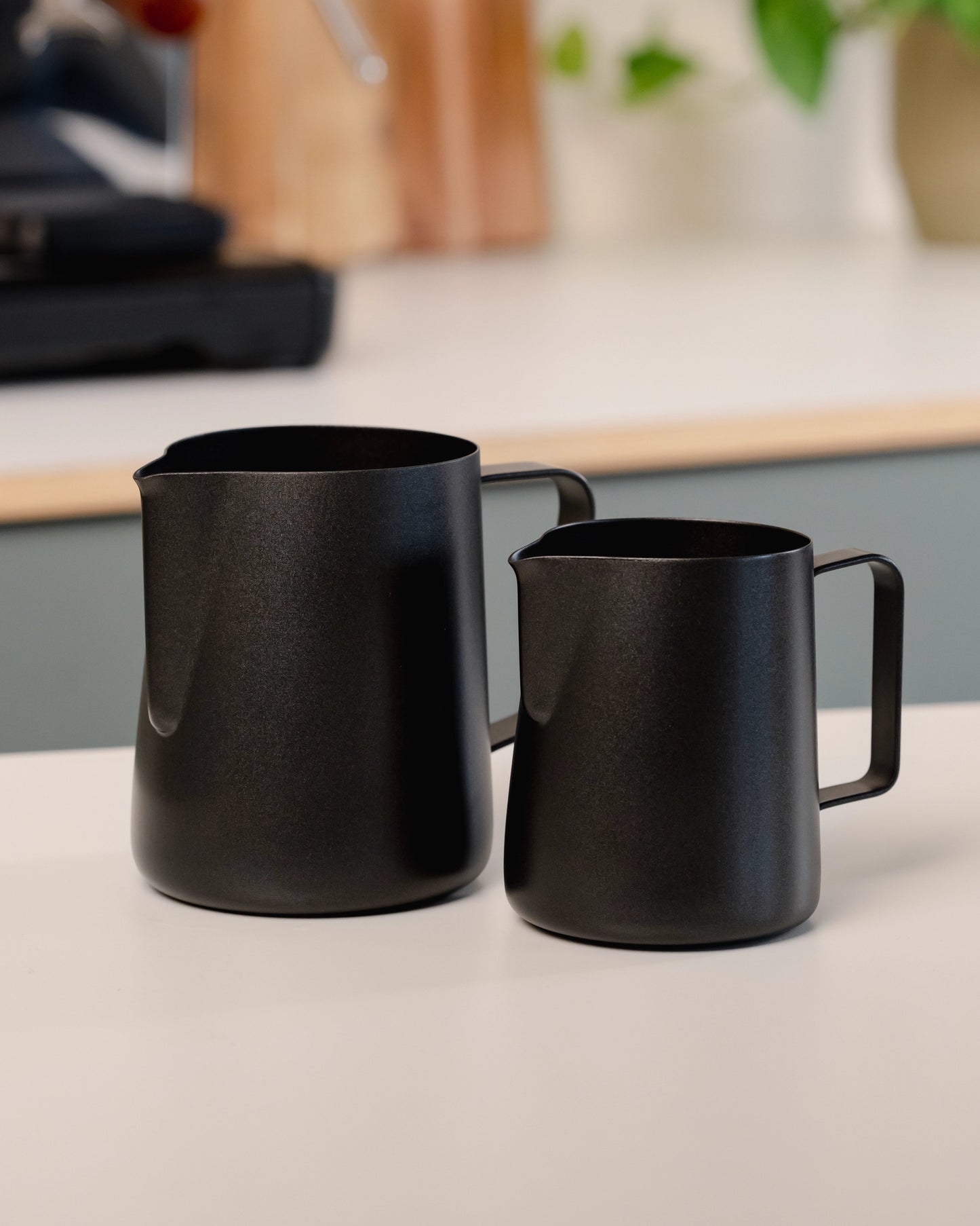 The Milk Frothing Jug Set includes two jugs in your chosen style.
