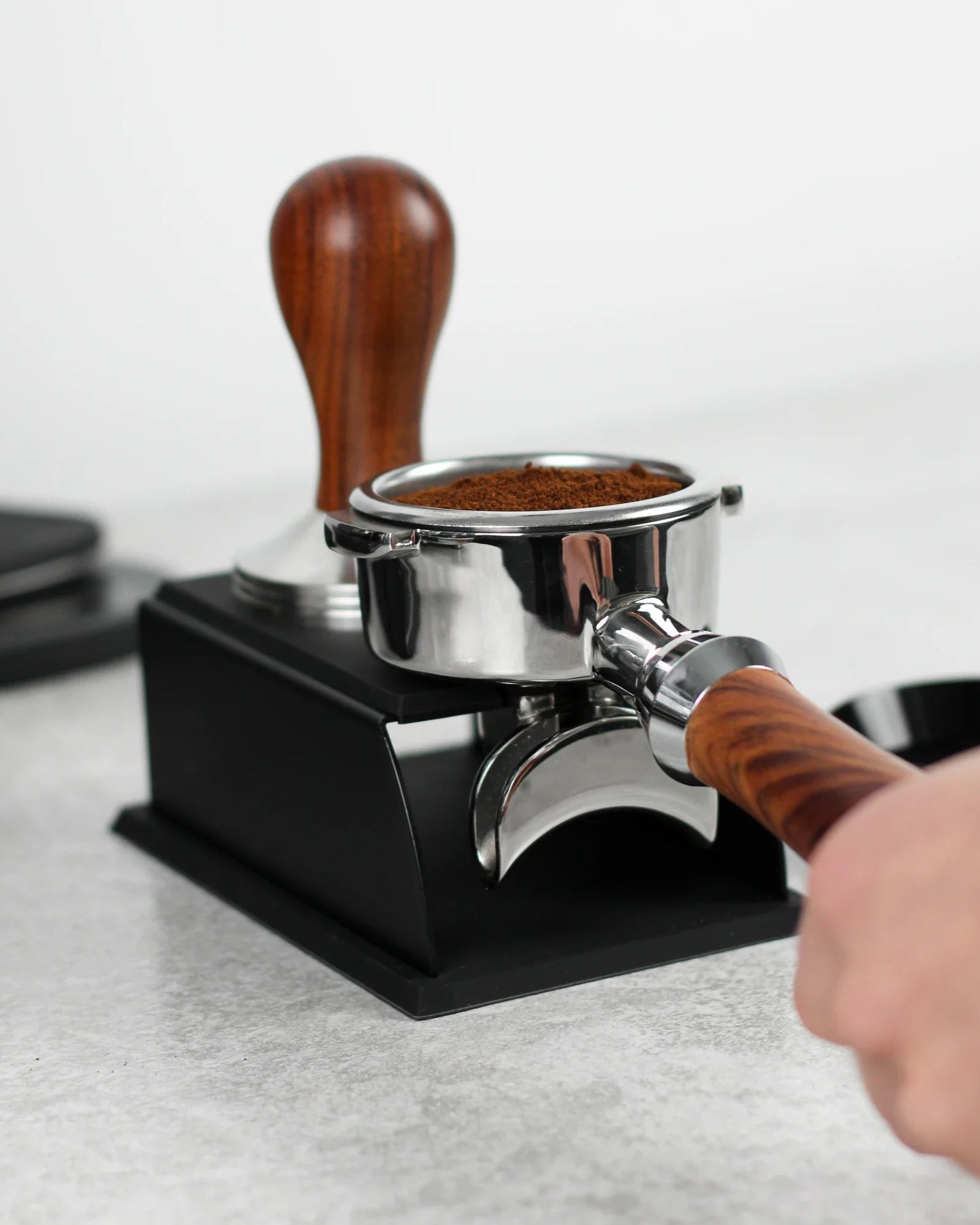 Tamping unevenly causes your water to flow through your puck at different speeds. This affects the balance of flavours you’re looking for in an espresso. This is where a tamping station comes in.