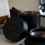 - Borosilicate glass or stainless steel in black or white