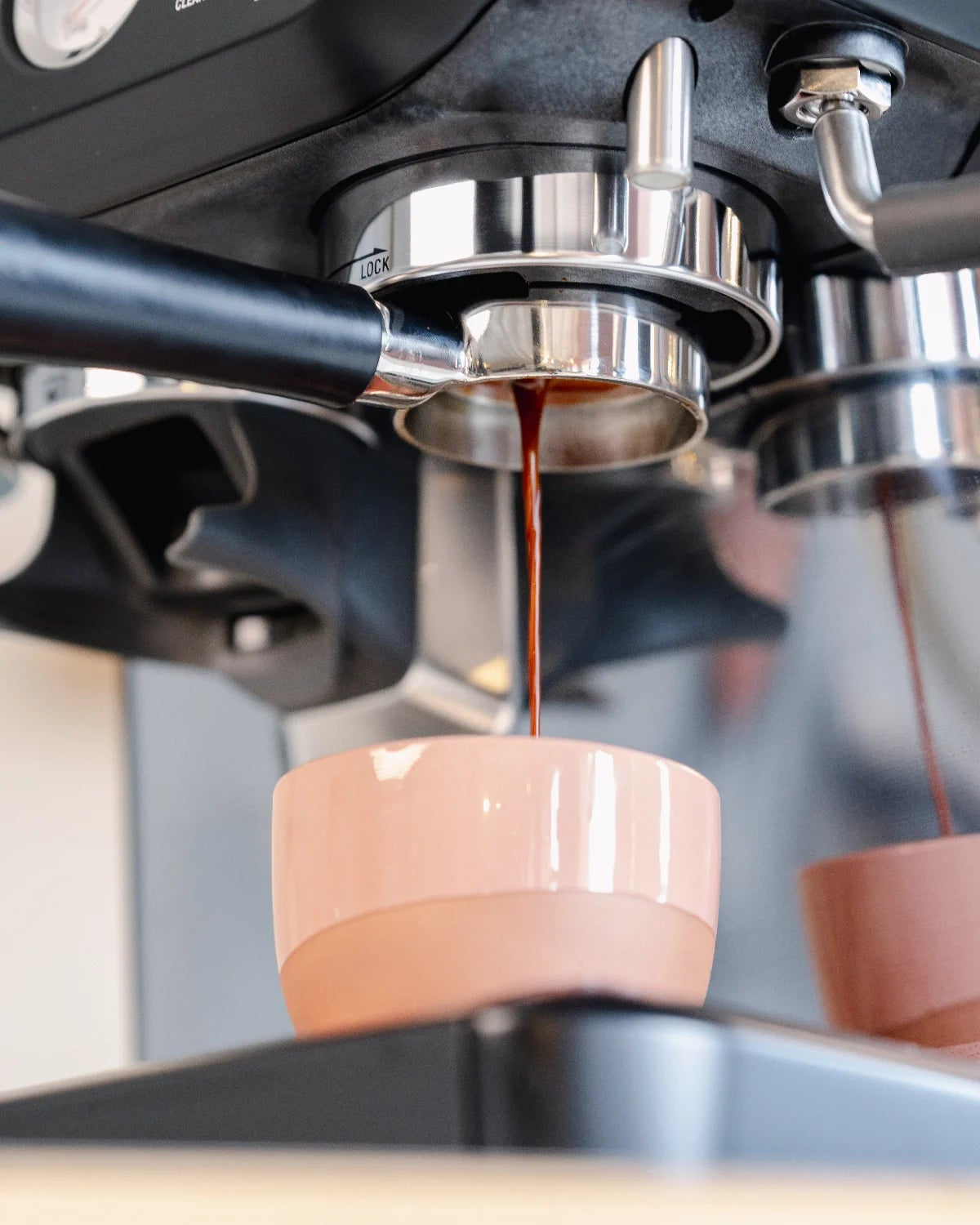 Die Espressozubereitung mit einem Bodenlosen Siebträger gibt dir viele Informationen über deine Extraktion. Der Unterschied zum klassischen Doppelauslauf-Siebträger: Du siehst die Unterseite des Siebes.