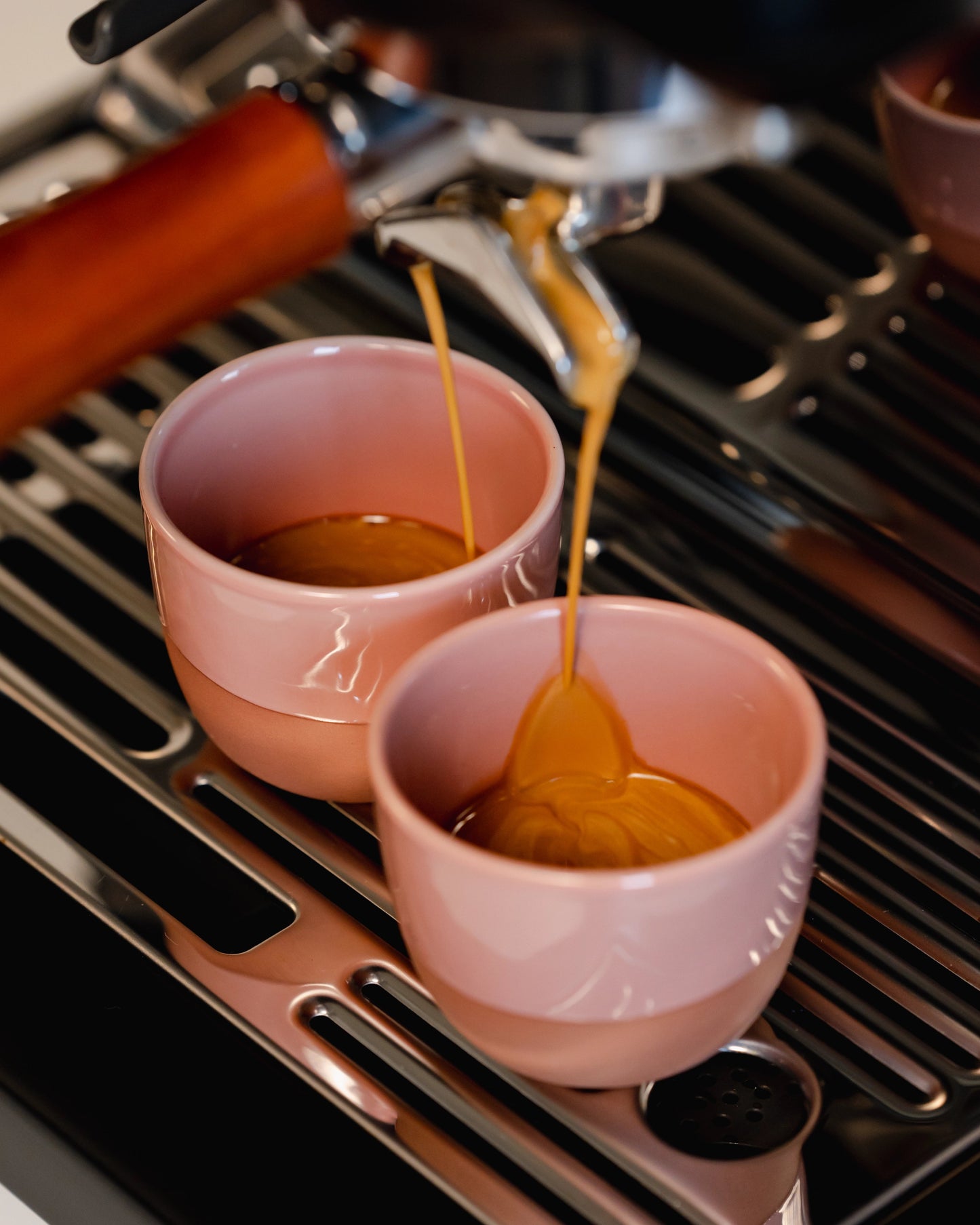 Unser Basistipp ist immer 18,5 Gramm gemahlener Kaffee, mit einer Durchlaufzeit von 25 Sekunden für 36/37 Gramm Espresso. Von dieser Basis aus kannst du nach Belieben experimentieren!