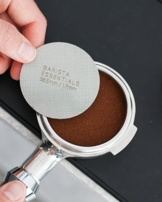 Mit einem Puck Screen rüstest du dich gegen Channeling. Die feinen Perforationen im Sieb verteilen das Wasser gleichmäßig über das Kaffeepuck. So erhältst du eine Espresso-Extraktion mit perfekt ausbalancierten Aromen.