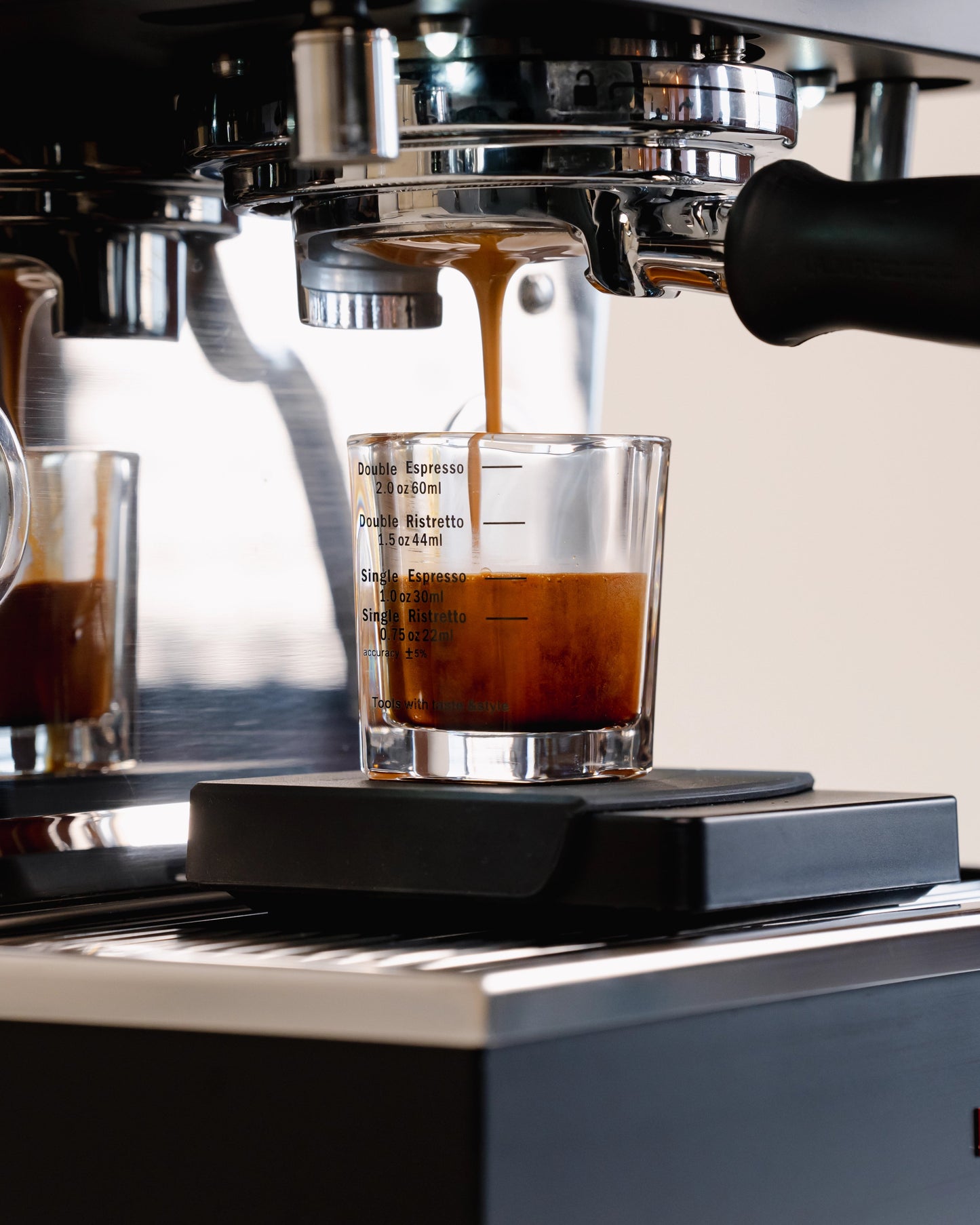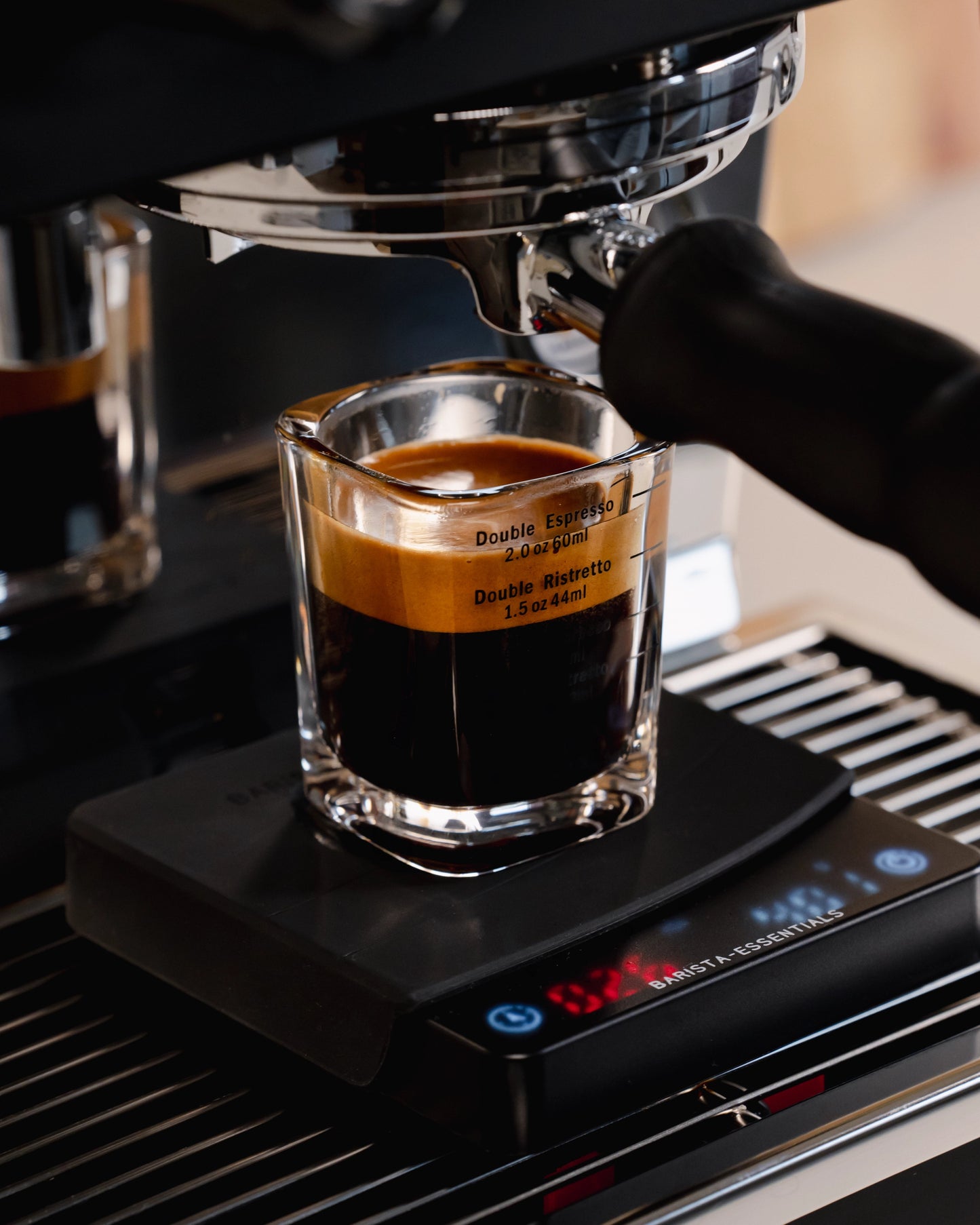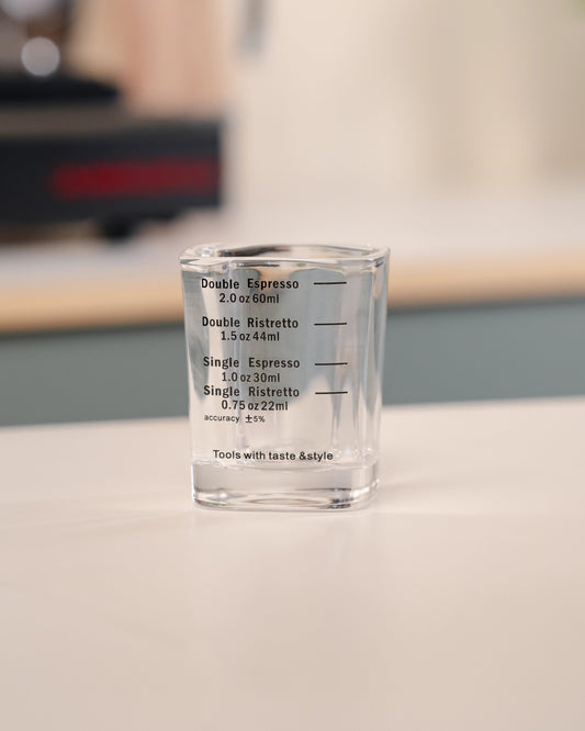 Mit diesem Espressoglas siehst du nämlich sofort, wie es um deine Extraktion steht. Die Crema-Schicht ist direkt sichtbar und mit den Messstrichen kannst du genau überprüfen, ob genügend Kaffee durch deinen Siebträger läuft.