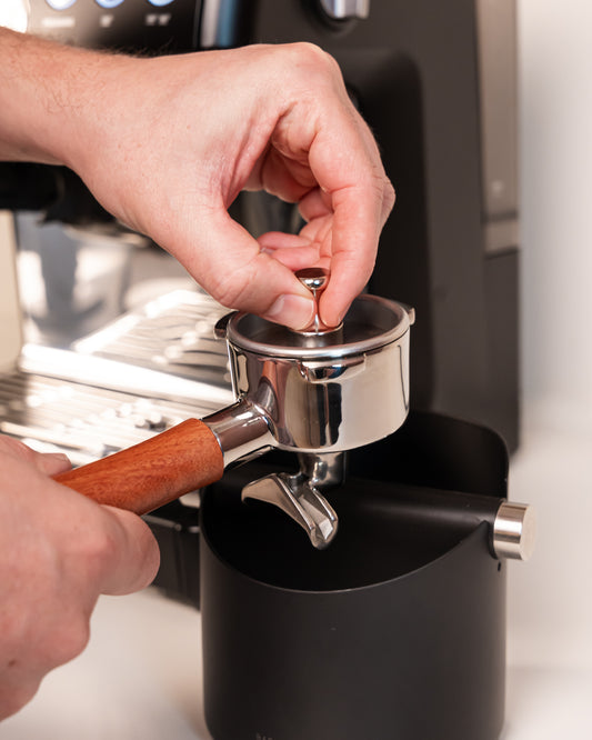 Wir haben auch andere Tools gegen Channeling: von Kaffeeverteilern bis zu WDT-Tools. Und mit unserem kalibrierten Klick-Tamper tampst du jedes Mal mit demselben Druck – für konstant leckere Kaffees.