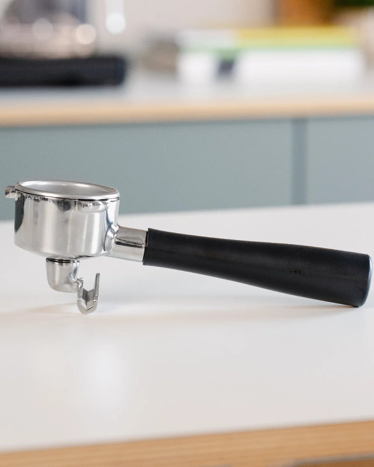 Wir haben viele Materialien und Designs getestet und am Ende unseren eigenen Siebträger mit Doppelauslauf entwickelt.