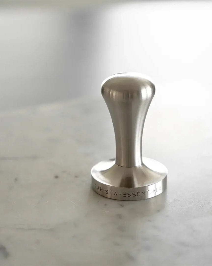 - Solide Edelstahl-Tamperfläche (auch mit Edelstahlgriff erhältlich)